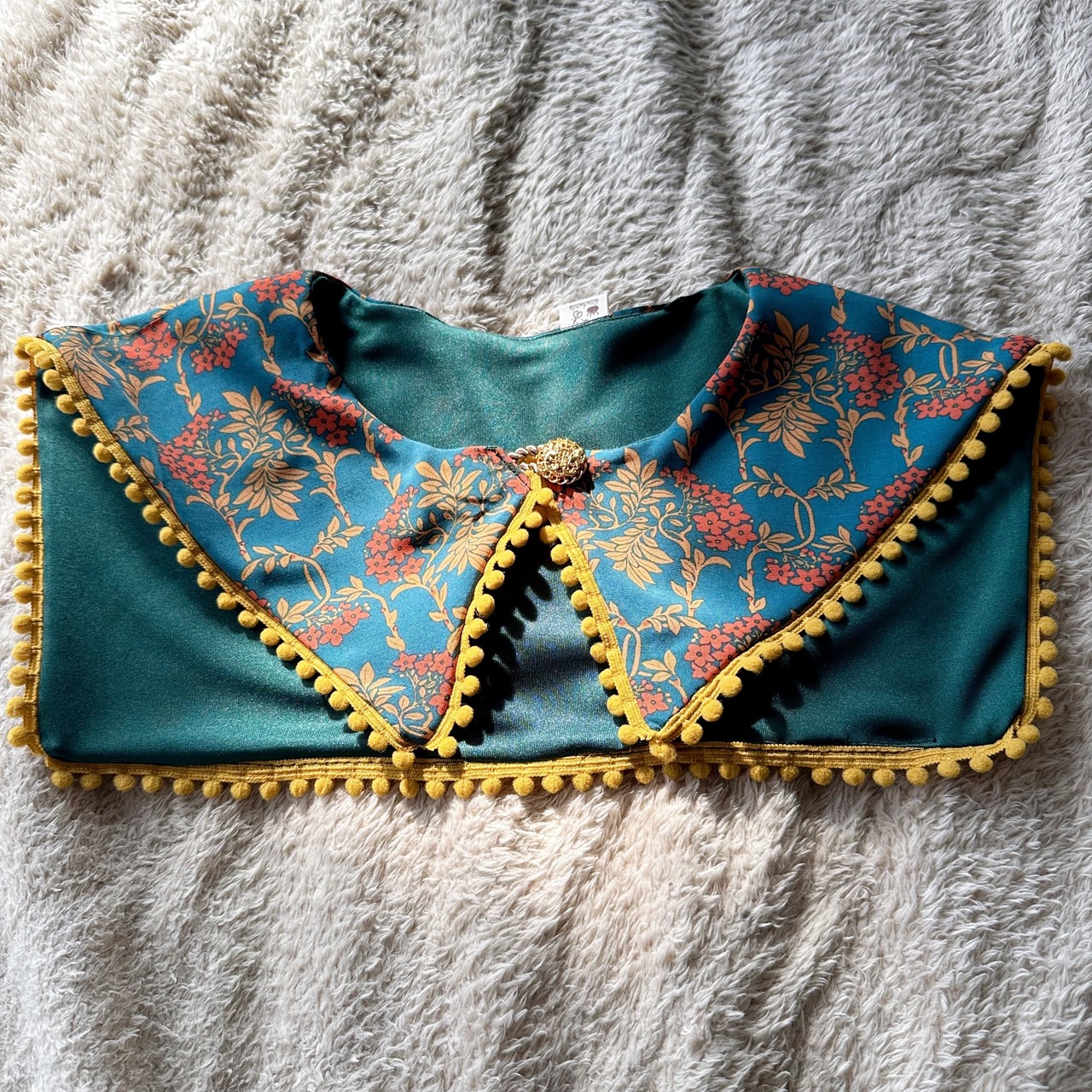 キュートエレガントつけ襟◇チェック柄つけエリ◇金色の紋章ボタン◇シルバレース装飾◇ひとくせアクセント