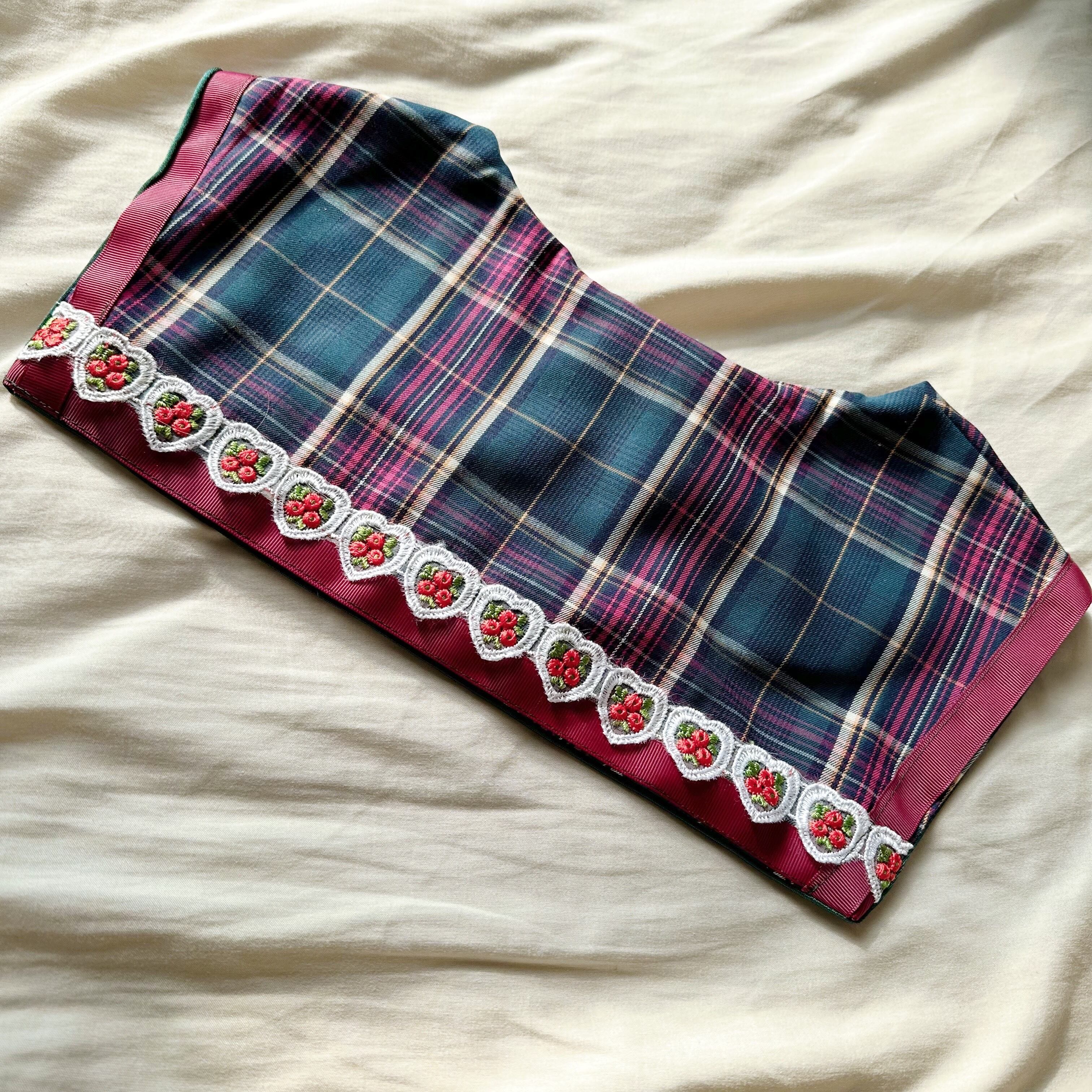 キュートエレガントつけ襟◇チェック柄つけエリ◇金色の丸ボタン◇ハートのお花レース装飾◇リボン付き◇ひとくせアクセント