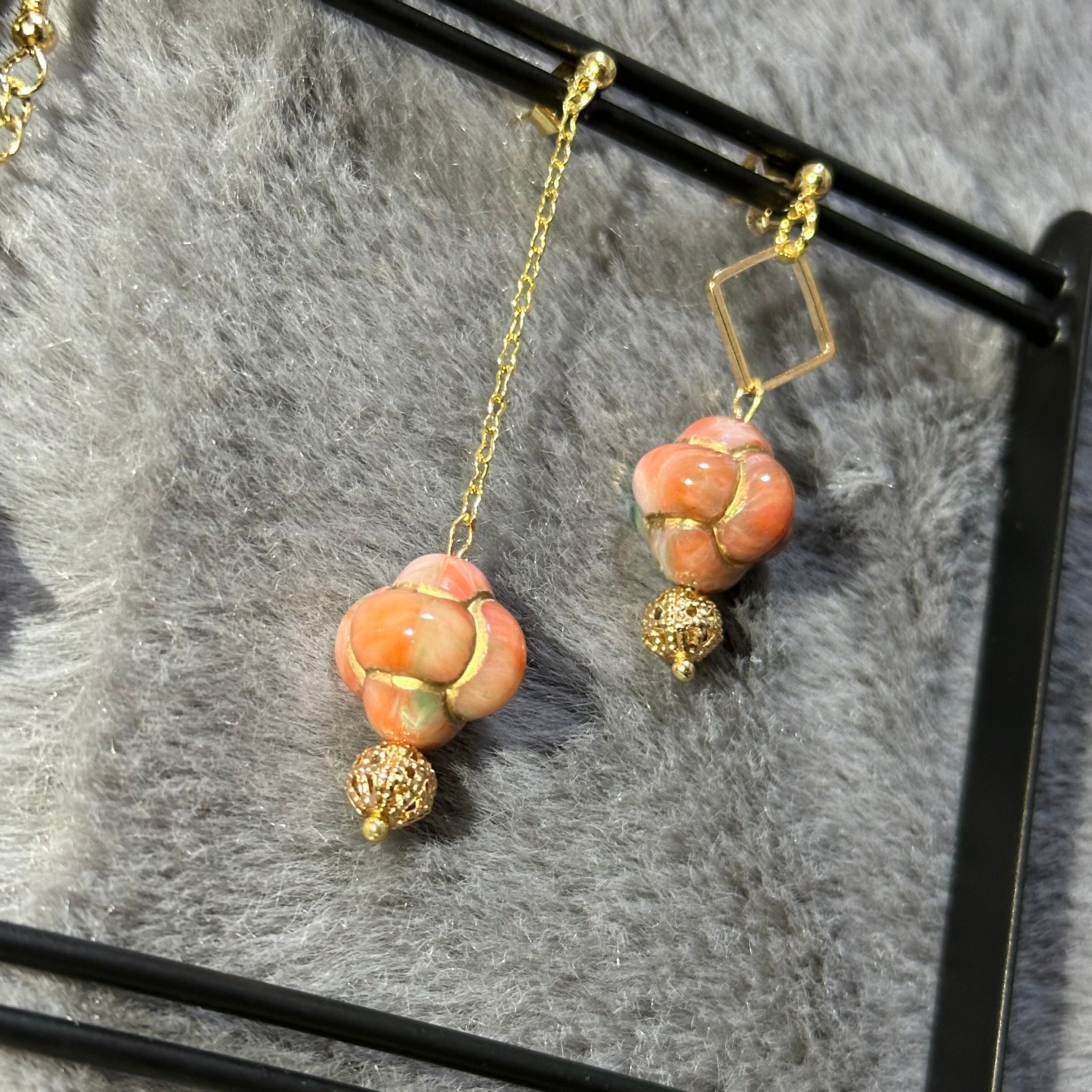 中華風アシンメトリーピアス◆推し色カラーを身につけるピアス◆フリーサイズ