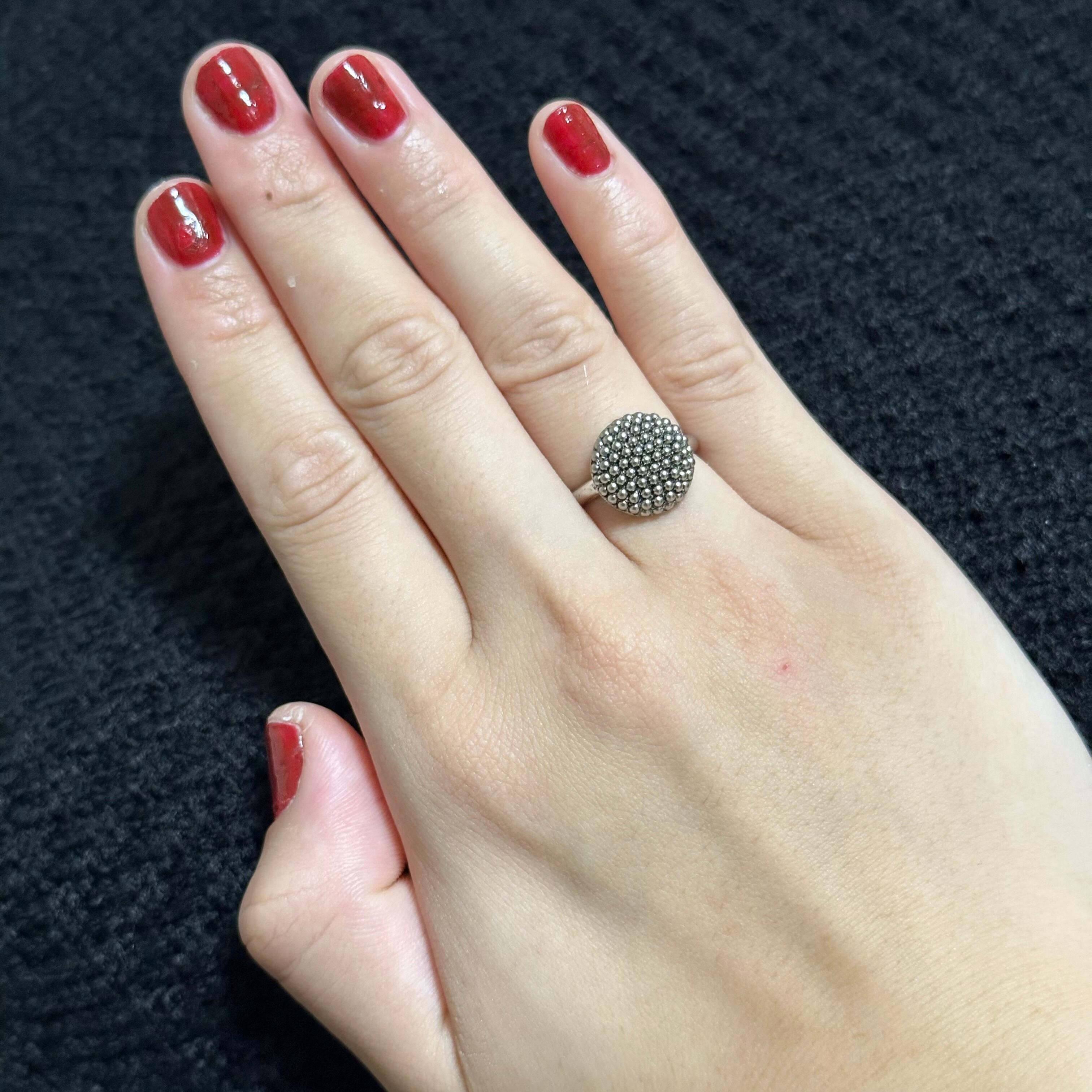 個性派ボタンが主役のサイズ調節可能リング