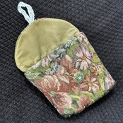個性ボタンが主役のレターポーチ 013 花柄ゴブラン織り生地 中綿入り マチ付き