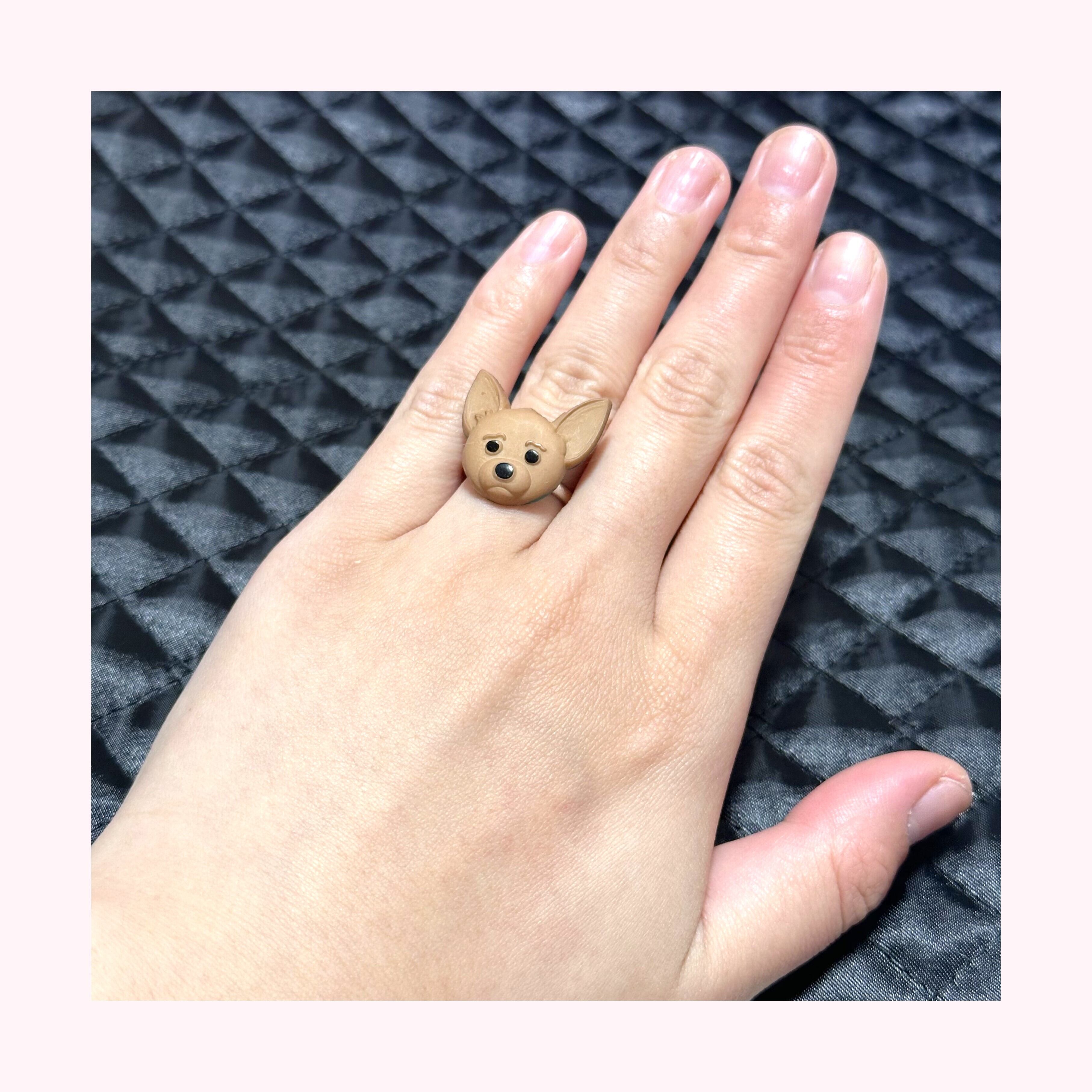 おちゃめリング◇チワワモチーフ◇個性派ボタンが主役のサイズ調節可能リング◆フリーサイズ13号〜